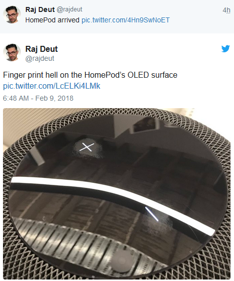 有网友表明HomePod的顶部操控台也是一个“指纹磁铁”